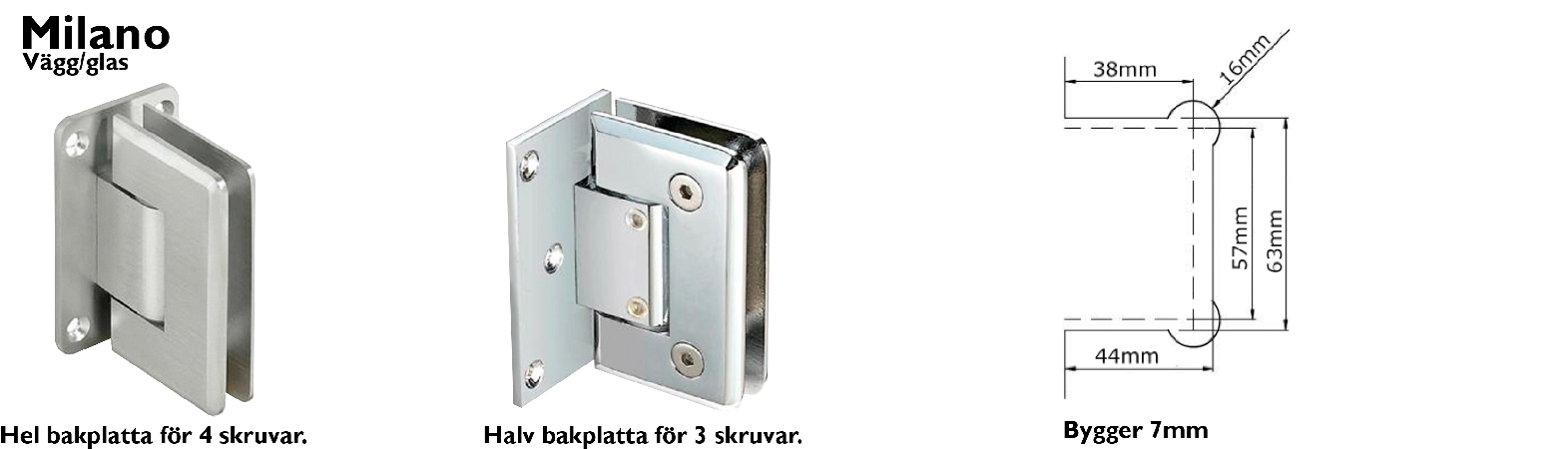 Duschgångjärn vägg/glas justerbara med rundad och fasad kant. Mässing gångjärn till 6-12mm´s glas. självstängande från 15°. Justerbar vinkel. Max 40kg/par. Bygger 7mm Hel bakplatta för 4 skruvar.